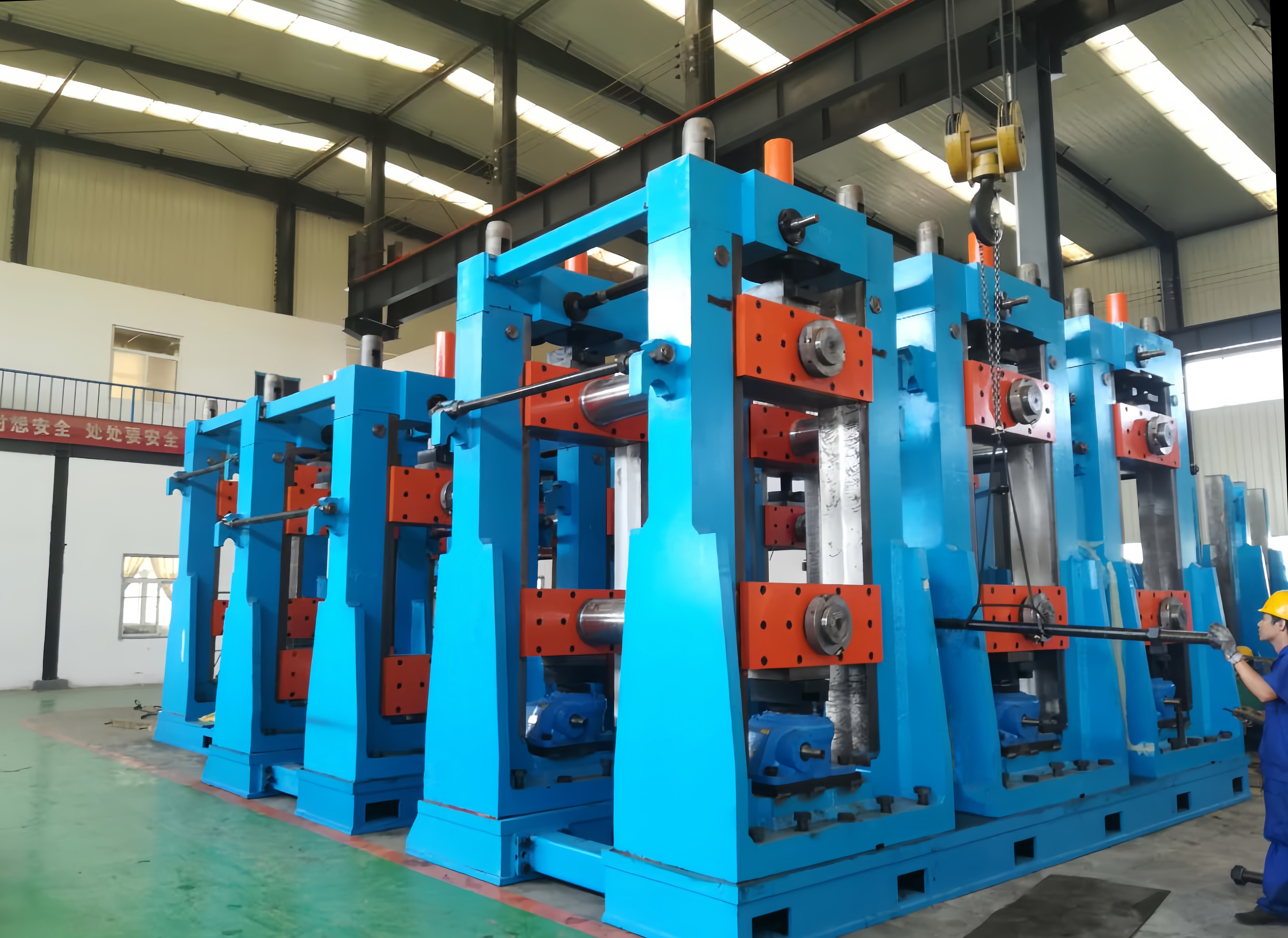 軋輥和輥墊 開卷機和矯平機 剪切和對焊機 活套 固態(tài)高頻焊機 飛鋸 精矯直機 水壓測試機 自動碼垛機 縱剪生產(chǎn)線 高頻直縫焊管設(shè)備